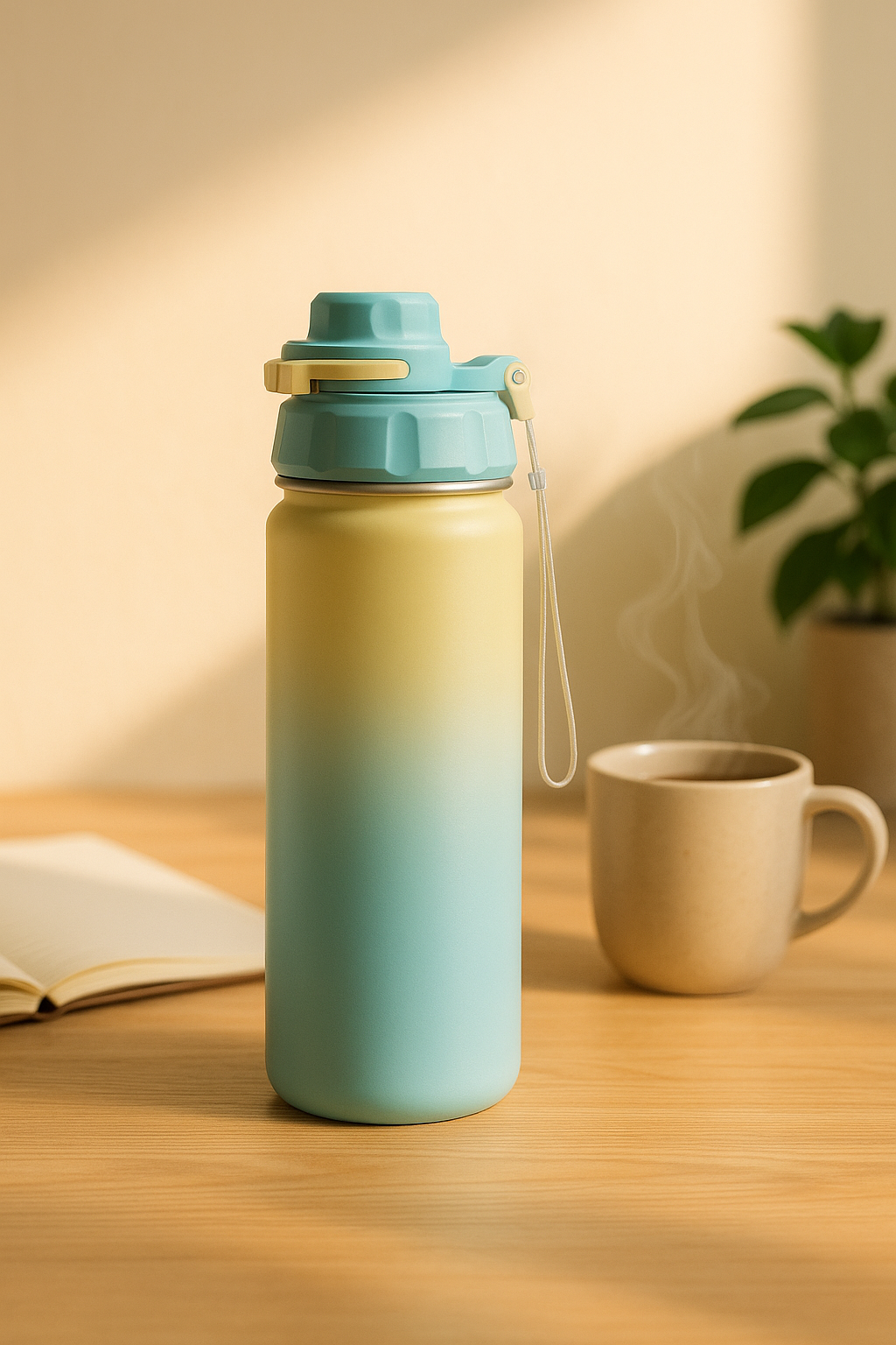 Kainatu Botella Térmica con Doble Tapa – 540 ml / 720 ml | Diseño degradado azul y amarillo Kainatu Botella Térmica con Doble Tapa – 540 ml / 720 ml | Diseño degradado azul y amarillo